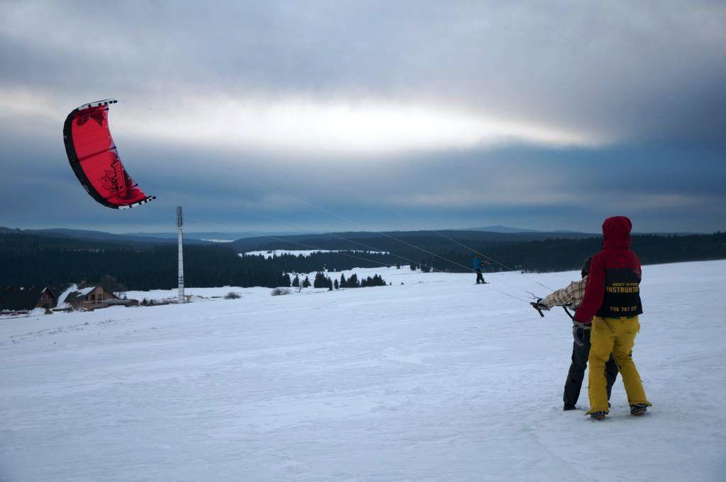 Kiting kurz na zemi můžeš absolvovat i na sněhu. Zapůjčení kite vybavení je v ceně. Můžeš si donést i vlastní kite, který vyzkoušíme a poradíme co s ním.