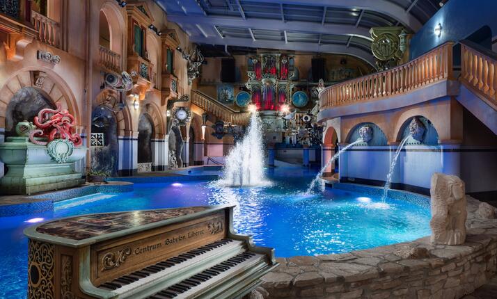 Liberecký Aquapark Babylon nabízí skvělou vodní zábavu, ale i relaxaci po celý rok. Kromě oblíbených vodních atrakcí Vás jistě překvapí originálním interiérem vyzdobeným ve stylu steampunku, jímž se pyšní jako jediný v Čechách. Každý den Vás uchvátí působivá Laser Show v 10:45, 16:45 a ve 20:30 hodin a vždy ve 12, 14, 16, 18 a 20 hodin se v Atriové hale rozezní varhanní hudba doprovázená barevnými světly. Po dovádění na tobogánech a skluzavkách můžete načerpat energii v Saunovém světě. Romantické duše mohou prozkoumat zákoutí jeskyní s akvárii nebo se uvolnit ve vířivkách či relaxačních zónách. A tohle všechno si užijete za jedno vstupné!