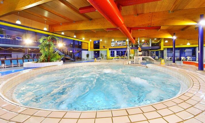 Areál Aquaparku Špindlerův Mlýn Vám nabízí příjemnou relaxaci v rekreačním a dětském bazénu se třemi tobogány včetně člunového tobogánu. K dispozici jsou i malá a velká vířivka, divoká řeka, whirlpooly, masážní trysky, aqua bike aj.