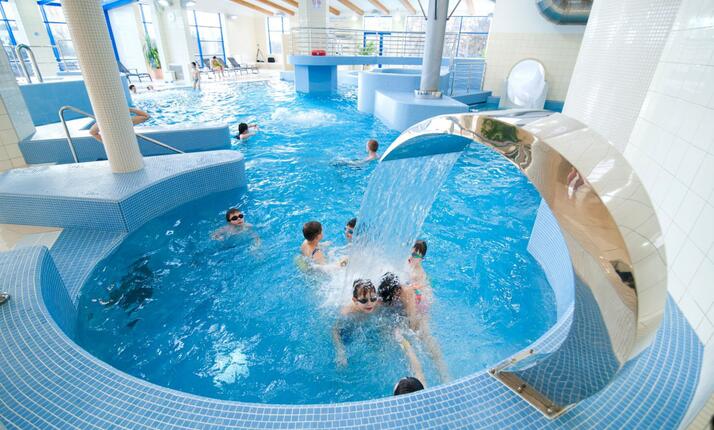 Ze zábavní zóny je možné přes turnikety projít přímo do wellness zóny se saunami a do haly plaveckého bazénu.