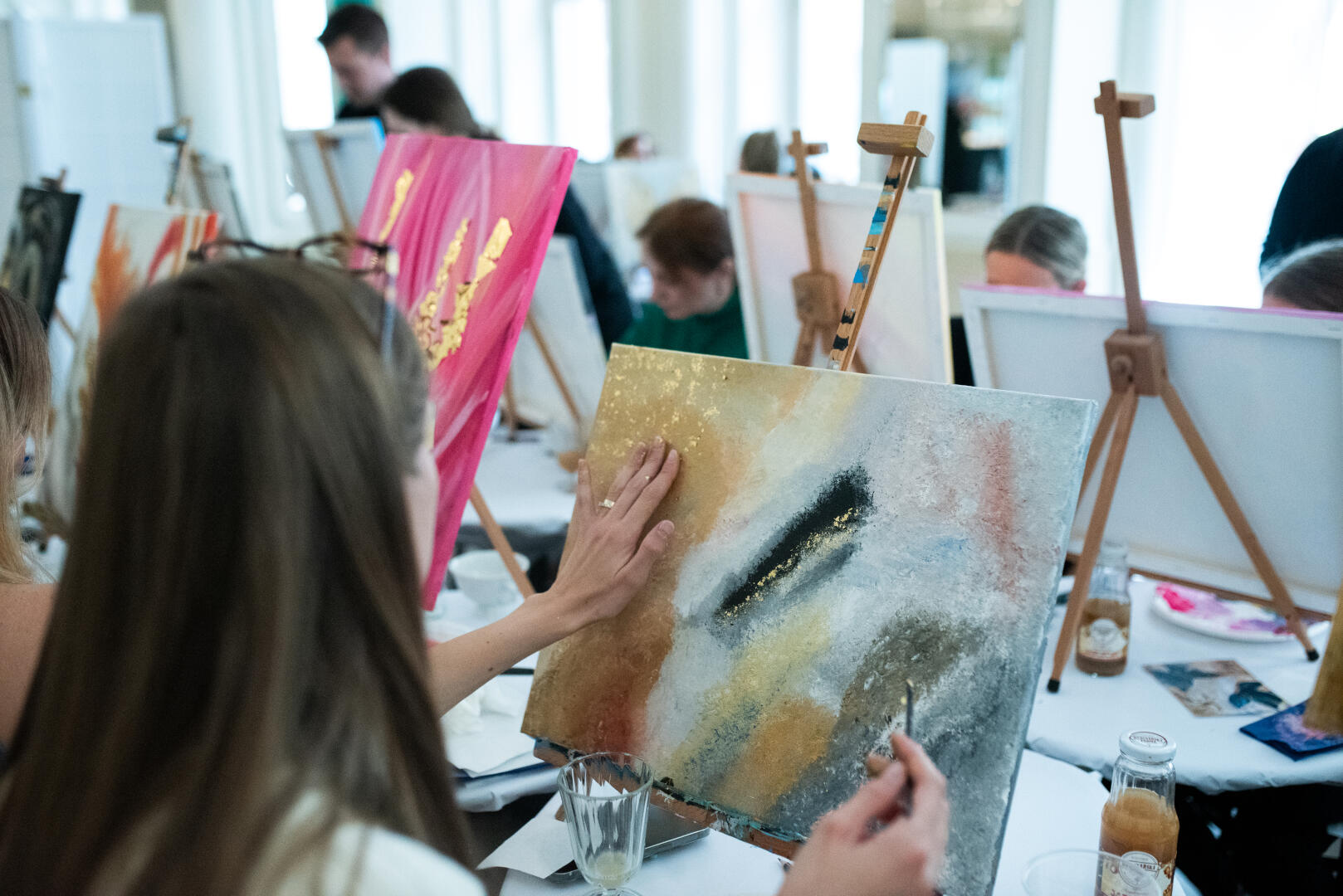 Zatímco si budete vychutnávat pečlivě sestavené sladké i slané pochoutky v elegantním prostředí, pustíte se do tvorby vlastního obrazu, který ozdobíte pravými zlatými plátky. Spojení jemných chutí, inspirativní atmosféry a výtvarného zážitku dává vzniknout chvílím, které jsou stejně krásné jako neopakovatelné.