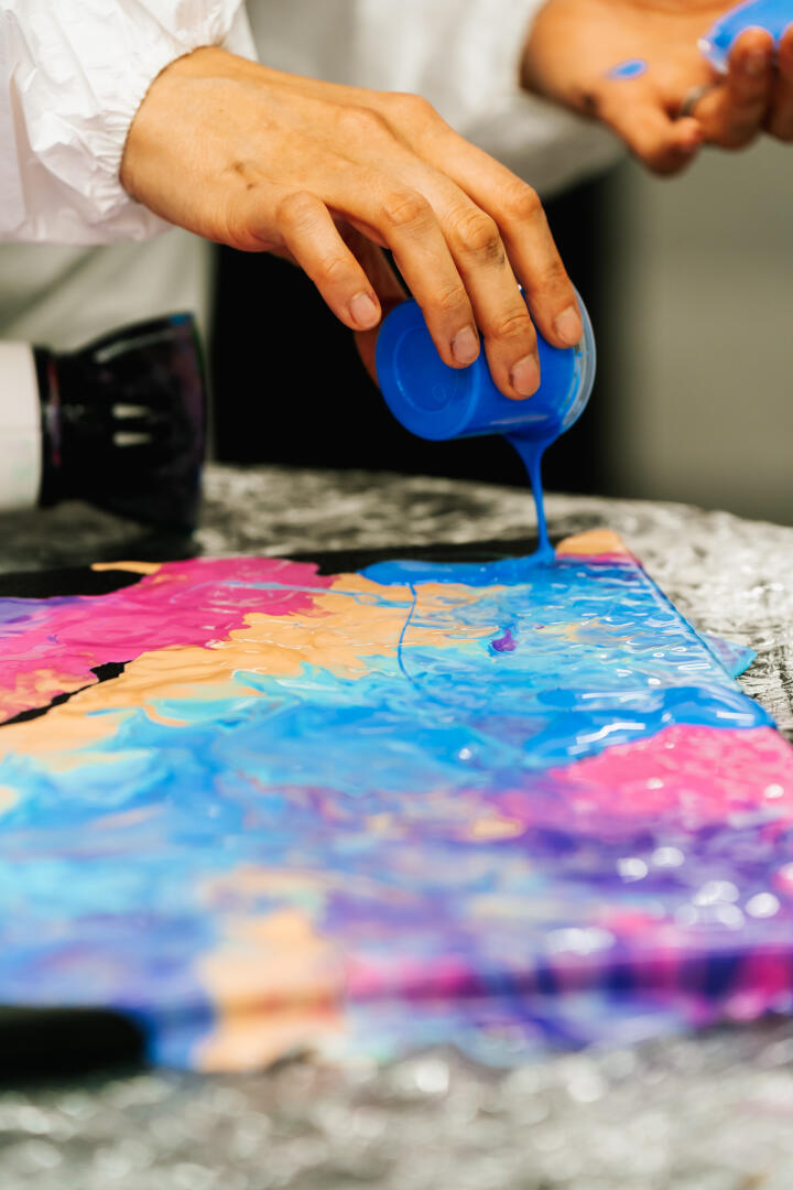 ArtLab je prostor, kde se z malování stává jedinečný zážitek. V elegantním ateliéru ve Vnitroblocku si sami nebo s přáteli vyberete jednu z neobvyklých výtvarných technik, které běžně nezažijete – od tekutého umění PouringArt, přes hypnotické kyvadlové spirály PendulumArt až po energické Pop-BalloonArt, při kterém barvy praskají z balónků přímo na plátno.