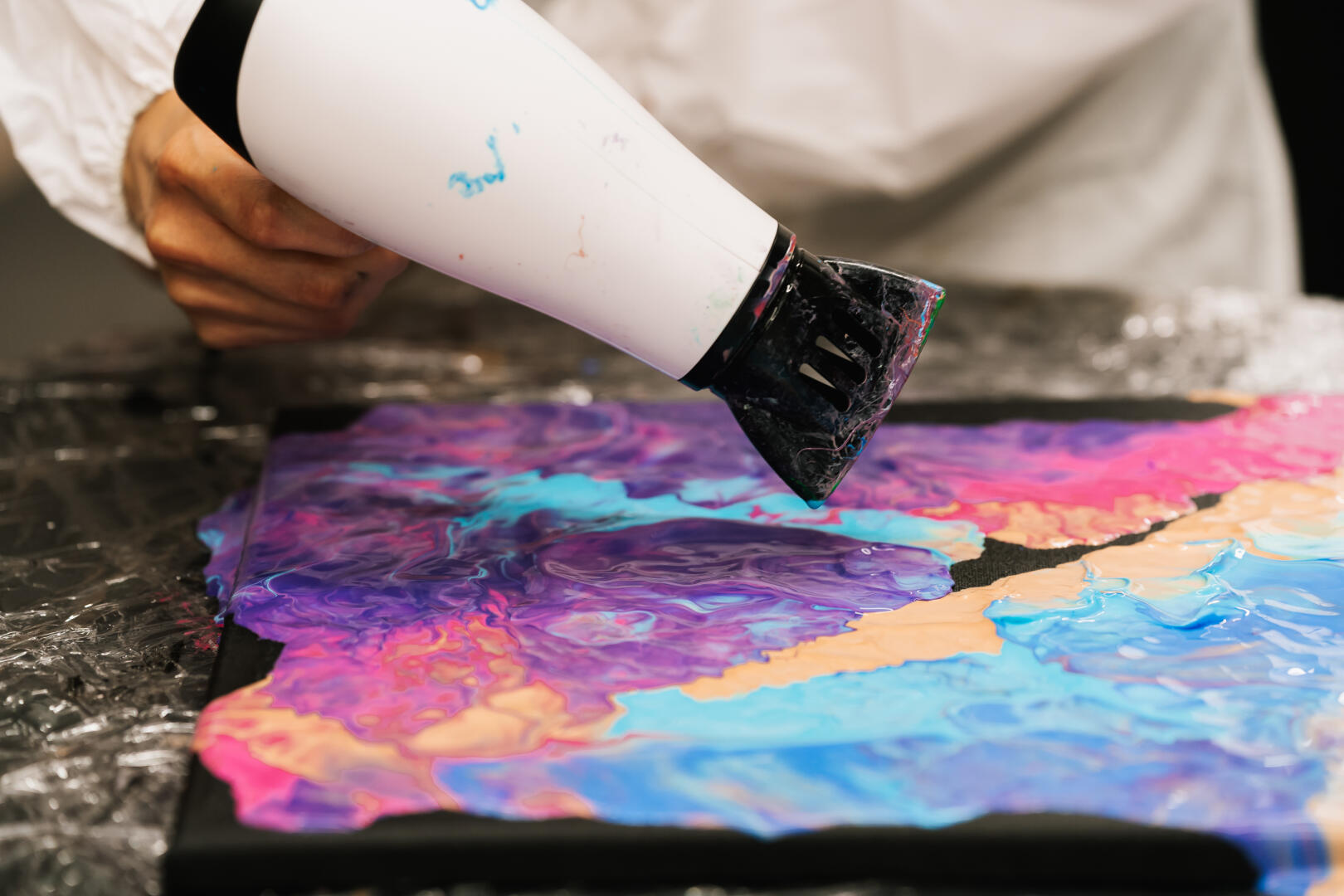 2. Zábava a kreativita v jednom – Nezvyklé techniky jako kyvadlové malování nebo střílení do balónků vás doslova vtáhnou do procesu.