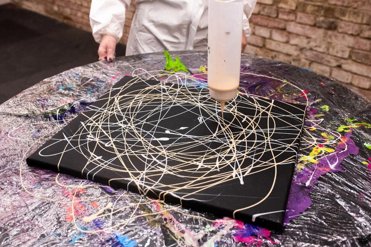 Pod vedením zkušených lektorů si vyzkoušíte netradiční výtvarné techniky, které nevyžadují žádnou předchozí zkušenost. Můžete se pustit do kyvadlového malování, kdy barva rytmicky dopadá na plátno podle pohybů vašeho těla. Nebo dáte průchod energii a náladě v cákání barvami, stříkání nebo dokonce ve střílení do balónků naplněných barvou, které explodují a zanechají na plátně nečekané stopy.