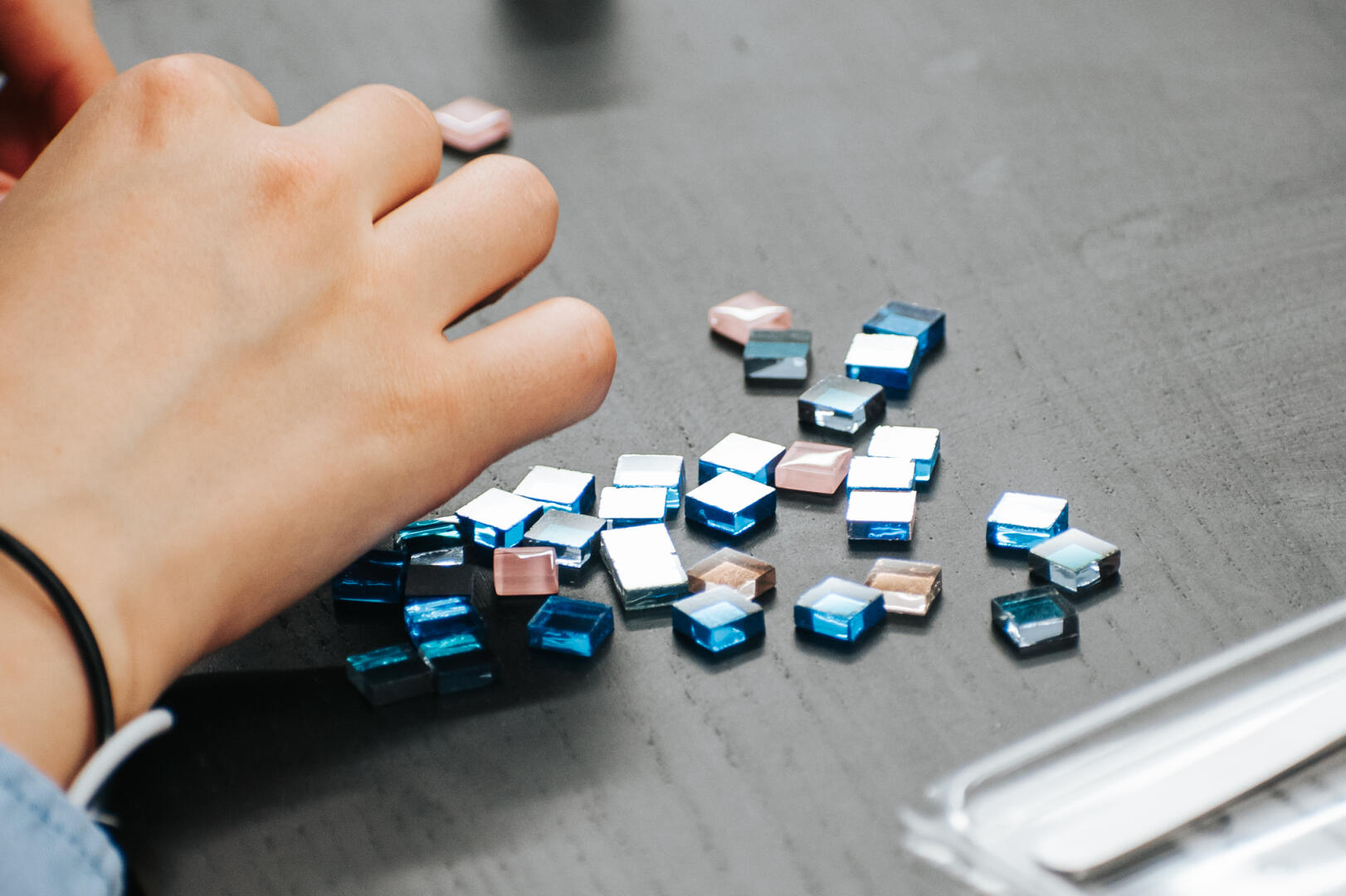 Na začátku si vyberete šablonu, která vám bude nejbližší. Pak už se pustíte do samotné tvorby – kombinování barev, tvarů a různorodých materiálů. Pracovat budete s keramickými a skleněnými kousky, které můžete dle libosti upravit, přebarvit nebo doplnit podle vlastní představivosti. Po celou dobu jsou vám k dispozici zkušení lektoři, kteří pomohou s technikou, inspirací i konkrétními tipy.