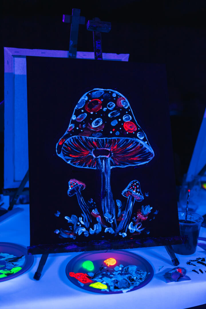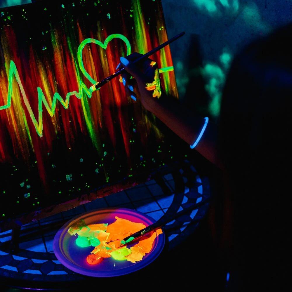 1. Nechte barvy zářit – Malování se speciálními fluorescenčními barvami vytváří efekt, který jinde nezažijete. Váš obraz bude zářit i potmě.