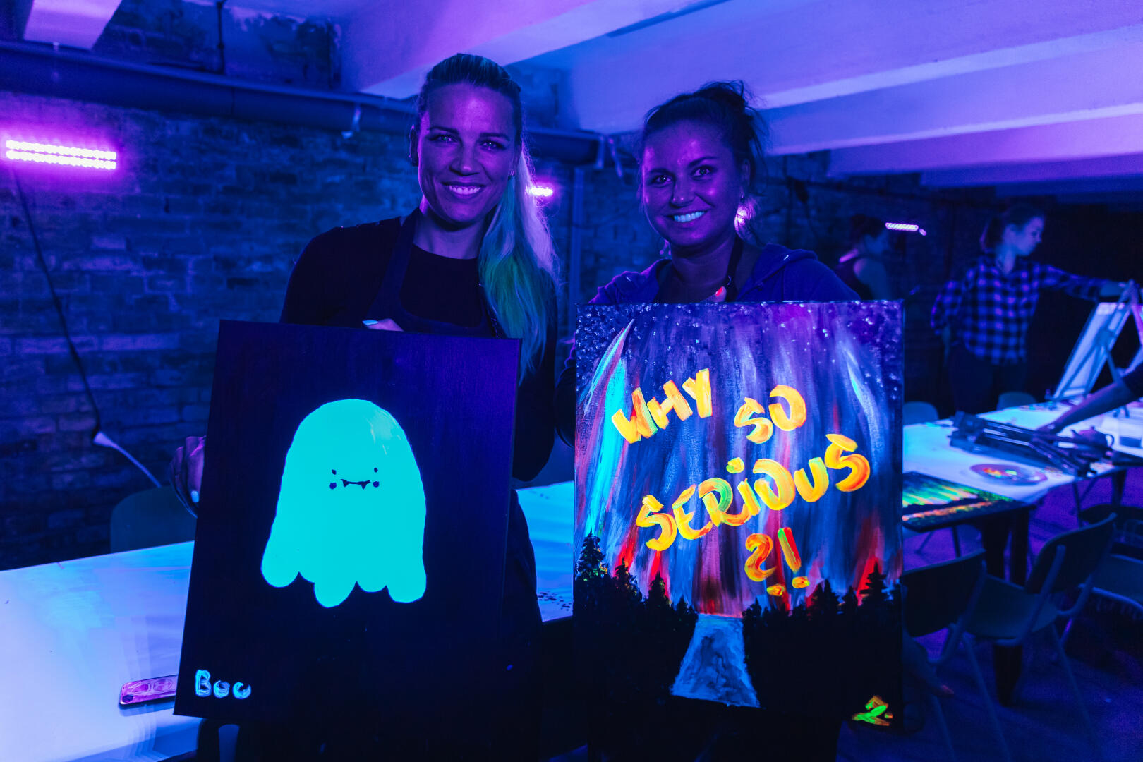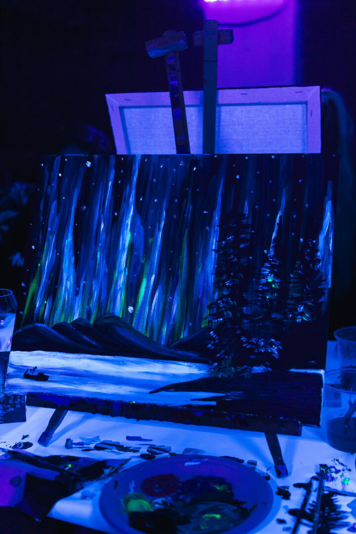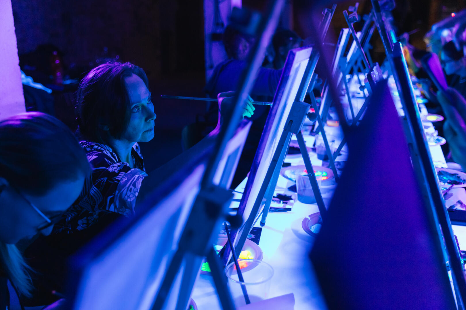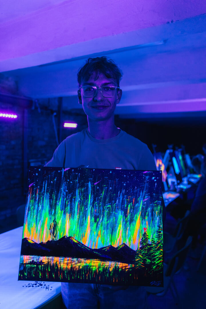 Pod vedením lektorů se pustíte do tvorby originálního obrazu s využitím speciálních barev, které září ve tmě. Každý tah štětcem se ve světle UV lampy promění v magický moment, a vaše dílo získá hypnotizující vzhled, který v běžném světle i tmě působí zcela jinak.