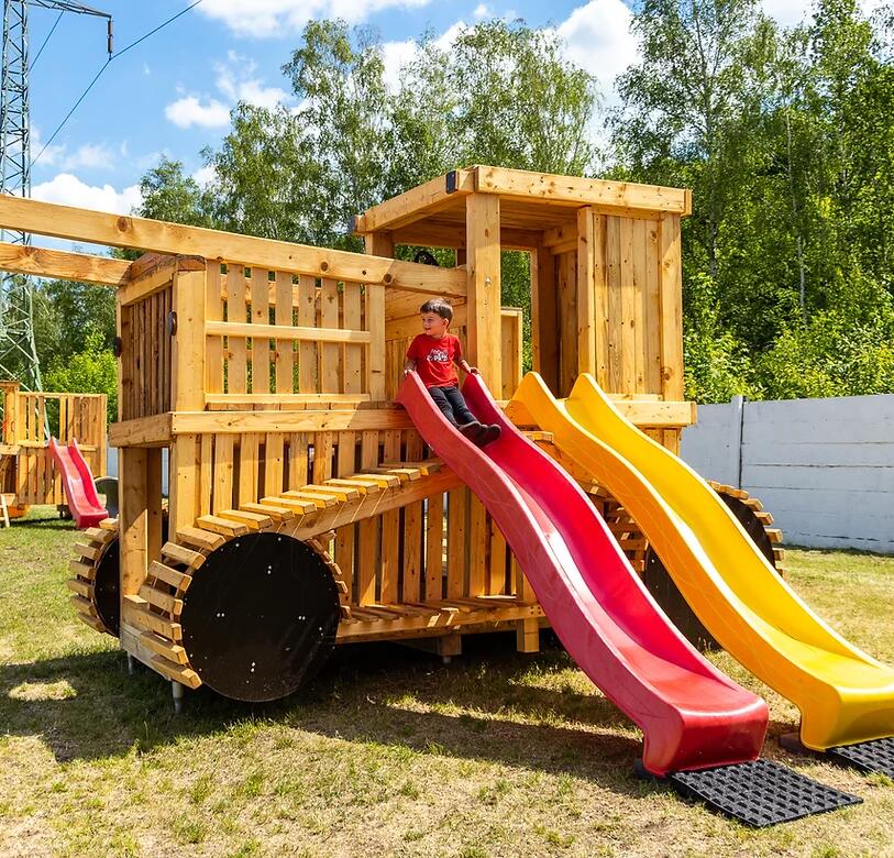 BagrPark Most začal vznikat počátkem roku 2022. V Česku se jedná o první zábavní park svého druhu. V areálu budete mít možnost si vyzkoušet jaké je to jezdit na dumperech, válcích, překládat kamenivo bobcaty, vyzkoušet svou šikovnost na minibagrech i si zkusit ovládat velký tří a půl tunový bagr. To není ale vše, u nás naleznou zábavu i ti nejmenší. Na dopravním hřišti se mohou projet na odrážedlech, šlapadlech či vedle na okruhu řídit elektrická autíčka s motivem stavebních strojů. Novinkou jsou i dvě nové nafukovací atrakce. Pořídili jsme pro vás obrovskou dvaceti metrovou skákakcí mašinku a velkou skákačku z filmu Auta. Pro větší děti je k dispozici jedna dráha pro traktory na silničním okruhu. Dále pak dvě dráhy pro čtyřkolky, jedna pro větší děti a druhá pro malé, které si mohou vyzkoušet elektrické miničtyřkolky. Novinkou v BagrParku je dráha pro minitank. Pro všechny návštěvníky máme připravené i velké pískoviště, obří nafukovací trampolínu či skákací traktorbagr. Neváhejte a přijďte si vyzkoušet se svými dětmi nezapomenutelný zážitek, který vám BagPark v Mostě přinese.