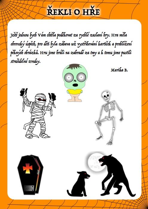 Primární určení je jako noční hra, kdy děti běhají s baterkou a hledají jednotlivá strašidla do svých hracích karet, ale pokud máte menší děti, které by se mohly strašidel příliš bát nebo se vám to lépe hodí do programu jako denní hra, lze ji bez omezení použít i takto.