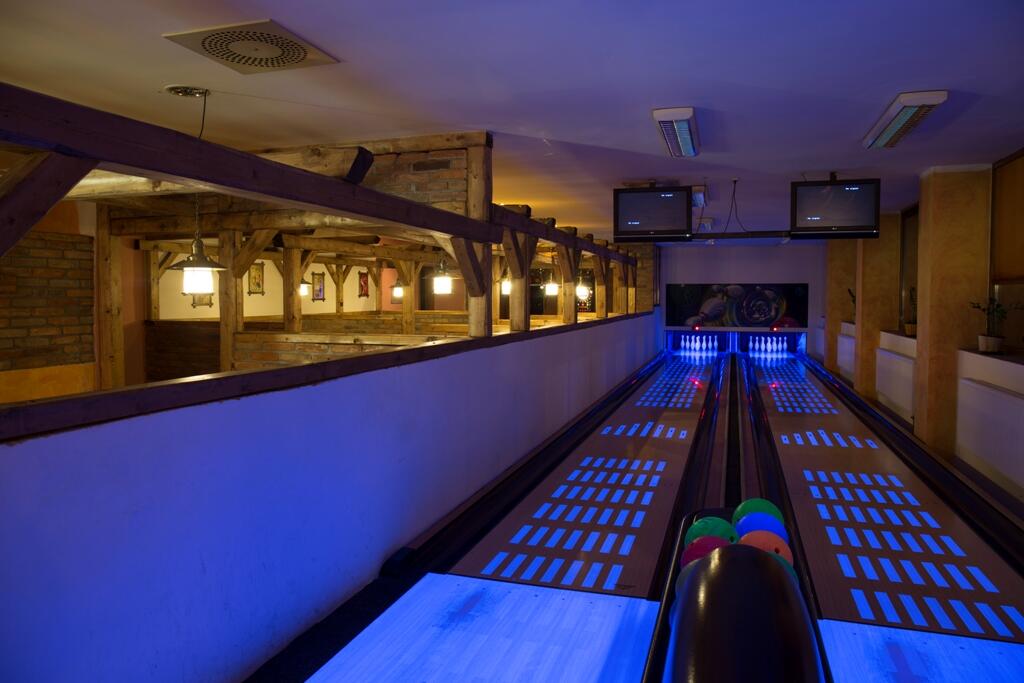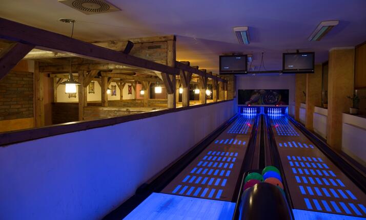 Dvě bowlingové dráhy jsou i UV podsvícené pro dokonalou atmosféru. Užijte si příjemné odpoledne a večer nejen s rodinou, ale také s přáteli nebo kolegy z práce.
