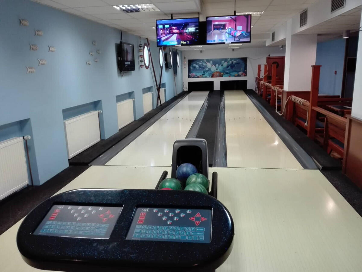 Bowling bar nabízí 80 míst k sezení a je rozdělen na sportovní část a restauraci s barem. Na velké obrazovce je možnost sledování sportovních utkání. Interiér bowling baru je ve stylu ponorky s velkým akváriem. Dvě bowlingové dráhy, jedna je vybavena ohrádkou pro děti. Možnost přezutí do sportovní obuvi, kterou vám zdarma zapůjčíme. Nabízíme velký výběr originálních míchaných nápojů, rumů, whisky, koňaků a ginů.