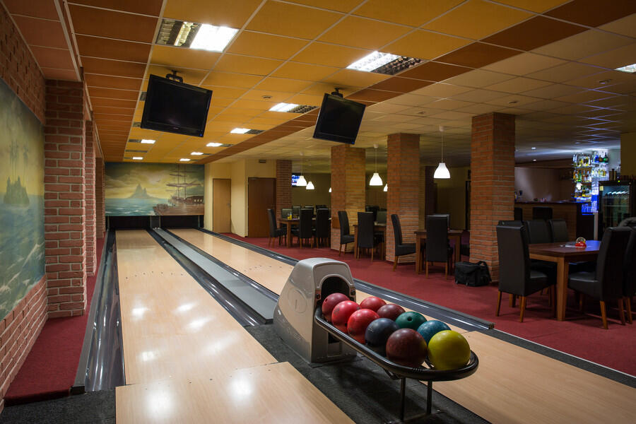 Bowling si můžete zahrát na dvou dráhách a na jedné z nich může hrát až 8 hráčů.
