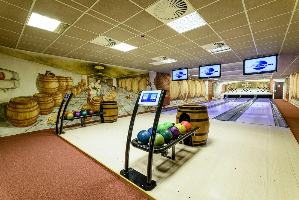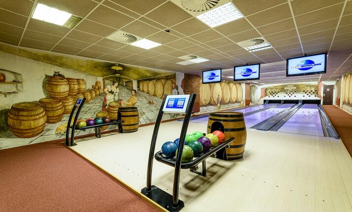 Nabízíme třídráhový provázkový bowling s UV provedením a score-systémem firmy Euro Bowling. Na jedné dráze může hrát až 8 hráčů.