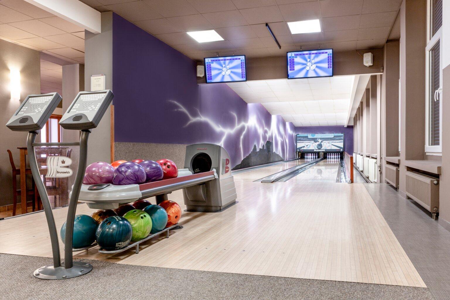 Dvě bowlingové dráhy od společnosti Brunswick jsou součástí klimatizovaného bowling baru. Pro Vaši zábavu je zde rovněž k dispozici kulečník a volně přístupná Wi-fi.
