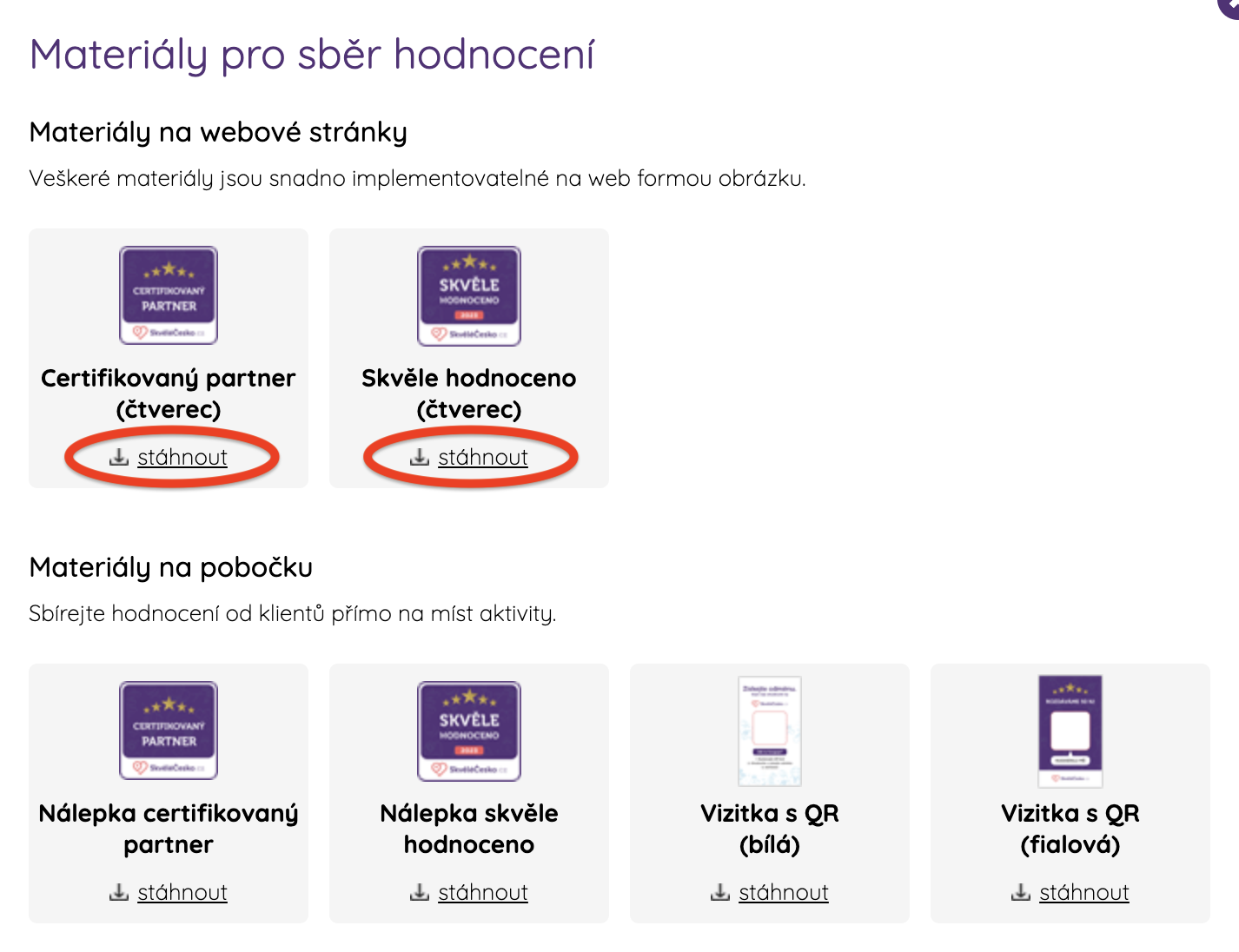 5. Ze stažených certifikátů si vyberte nejvhodnější, vložte ho na váš web a přidejte odkaz pro hodnocení. A je hotovo! :)