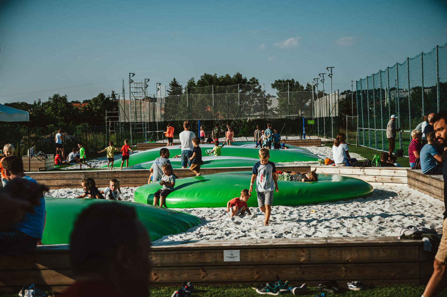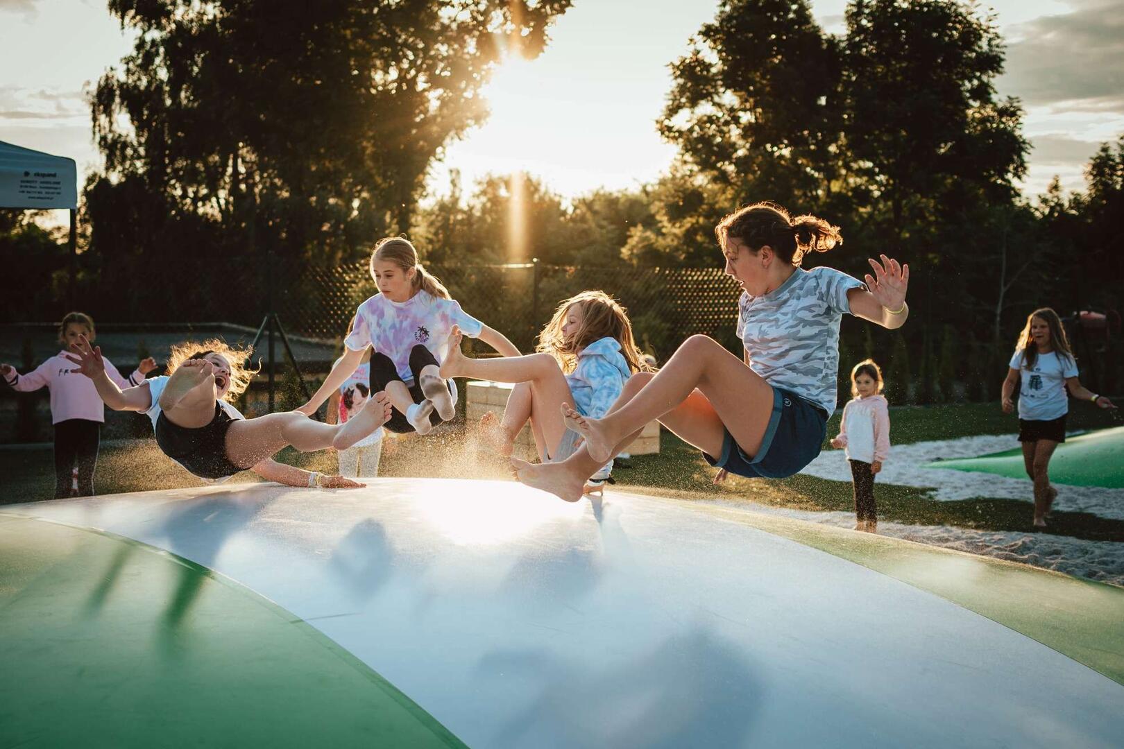 Tři trampolíny různých velikostí a pro ty nejmenší máme připravenou vodní postel obklopenou karibským pískem.