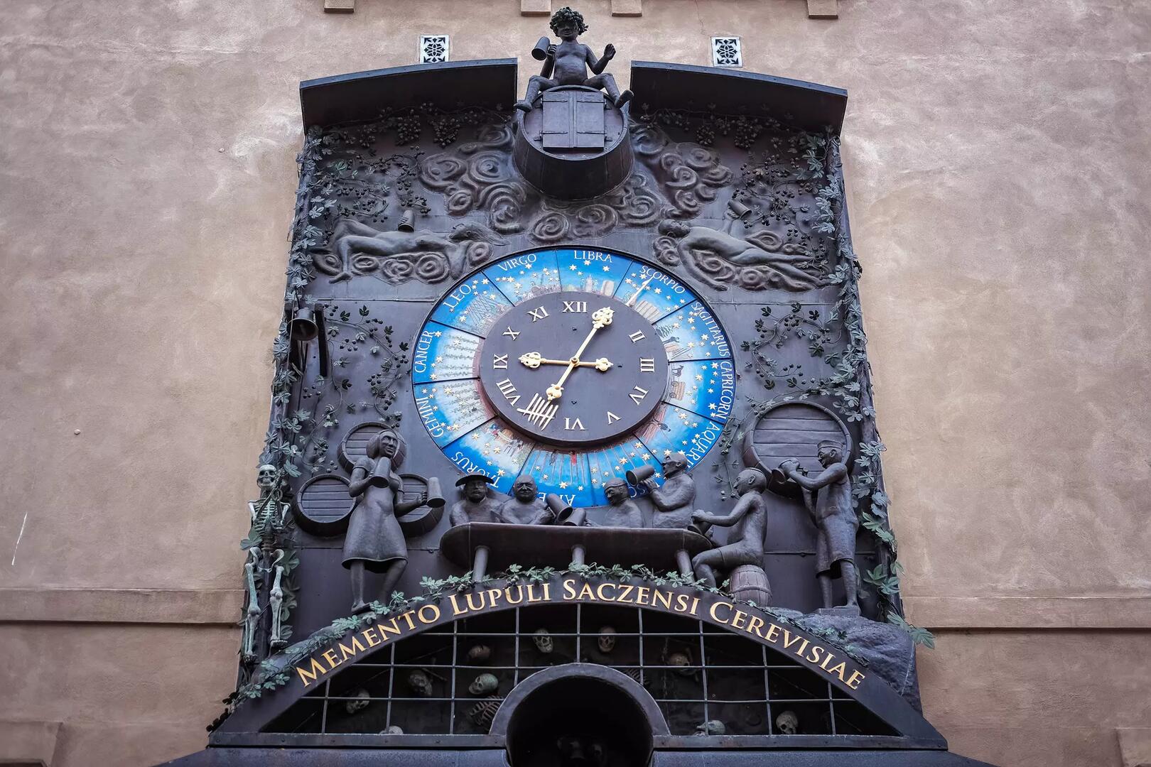 Chmelový orloj - Chmelový orloj je opravdovým světovým unikátem. Portál orloje představuje alegorii života, typickou pro naši Žateckou chmelařskou oblast. Hodinový ciferník je orámován dvanácti měsíci se znamením zvěrokruhu a vyobrazením chmelařského roku. Každou celou hodinu originální mechanismus orloje uvede do pohybu neobvyklé představení s odbíjením hodin.