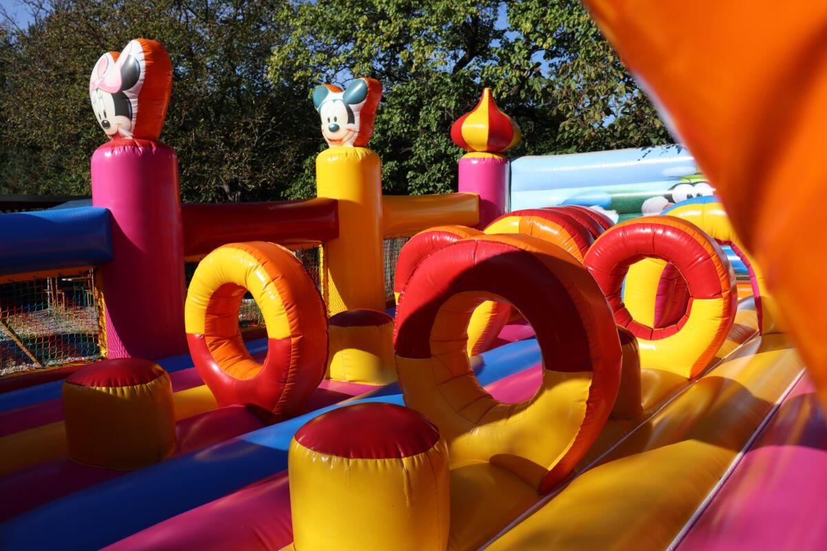 Venkovní areál nabízí nafukovací atrakce, trampolíny, pískoviště, lezeckou stěnu, minihřiště pro nejmenší, příjemné posezení pro dospěláky, občerstvení, zábavné programy,…