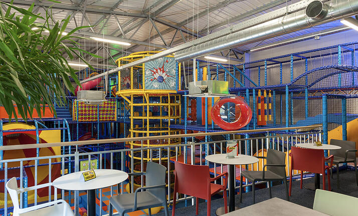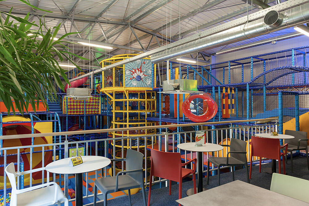 čtyřpatrová dětská prolézačka se spoustou překážek o velikosti 1200 m3