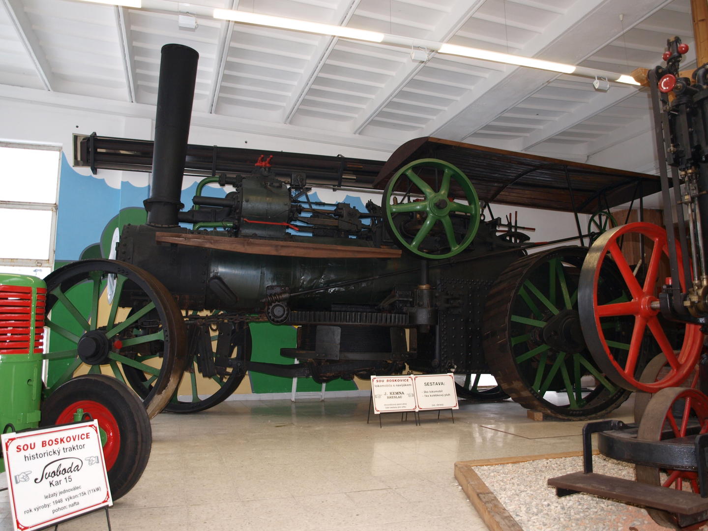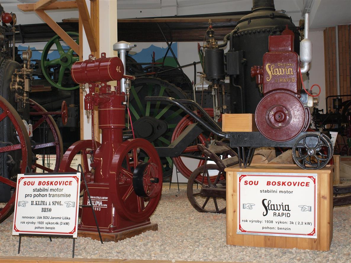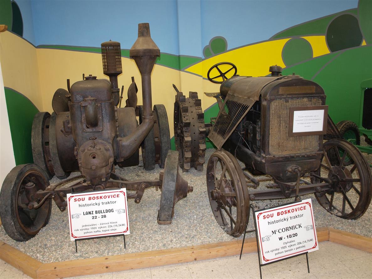 Základ sbírky historických strojů tvoří exponáty shromažďované Středním odborným učilištěm v Boskovicích v 70. letech minulého století, které sloužily k výuce. Sbírka obsahuje výrobky českých a moravských továren (Škoda, Praga, Wikov, Svoboda, Zetor, Slávia), ale i výrobky zahraničních značek (Lorenc, Benz, Kokora, Lanz Bulldog, Famo, Fordson, Farmall, Massey Harris, Mc Cormick), které byly používány v období první masové mechanizace zemědělství. Součástí expozice je i soubor dobového zemědělského nářadí.