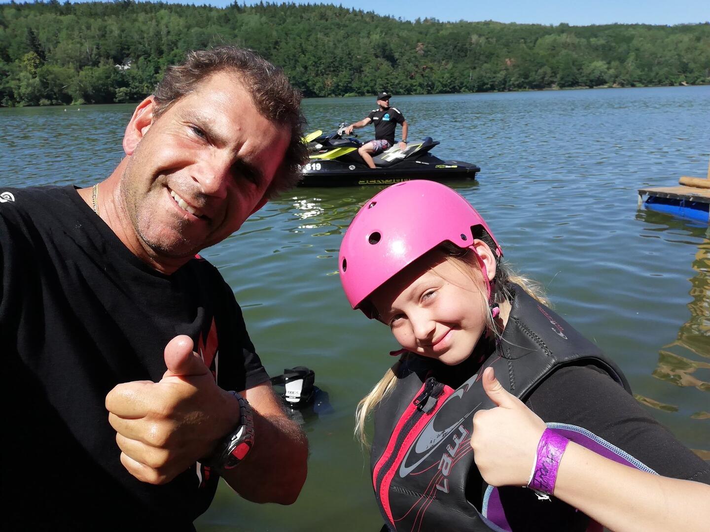 v 10 metrové výšce, nicméně jako delfín si zaskáče opravdu každý. Celková dosažená výška záleží nejen na schopnostech flyboardera, ale samozřejmě také na výkonu vodního skútru.