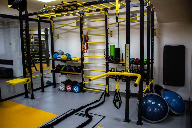 Jsou zde stanoviště pro TRX (8x), workout kovová konstrukce, kettlebelly, medicimbály s odrazovou deskou, Escape gymnastický míč, profibalance míč, pružné lano a další zajímavé pomůcky.
