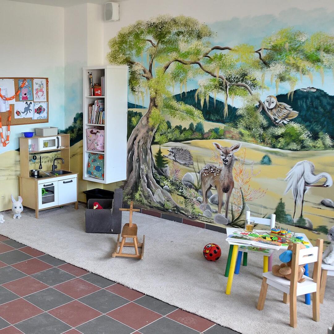 Herna i-Family je útulné a inspirativní místo pro malé děti. Je vybavena širokou škálou hraček, her a dalších prvků. Zkušená chůva nabízí dětem aktivizační činnosti a hravou formou s dětmi objevuje svět. Originální nástěnná malba se zvířátky je útulným a veselým prvkem. I malé děti poznávají nám známý Buchlov a Barborku. Herna je tu pro děti - členy dětského klubu Hnízdečko, ale také pro veřejnost - pro děti s doprovodem od pondělí do soboty.