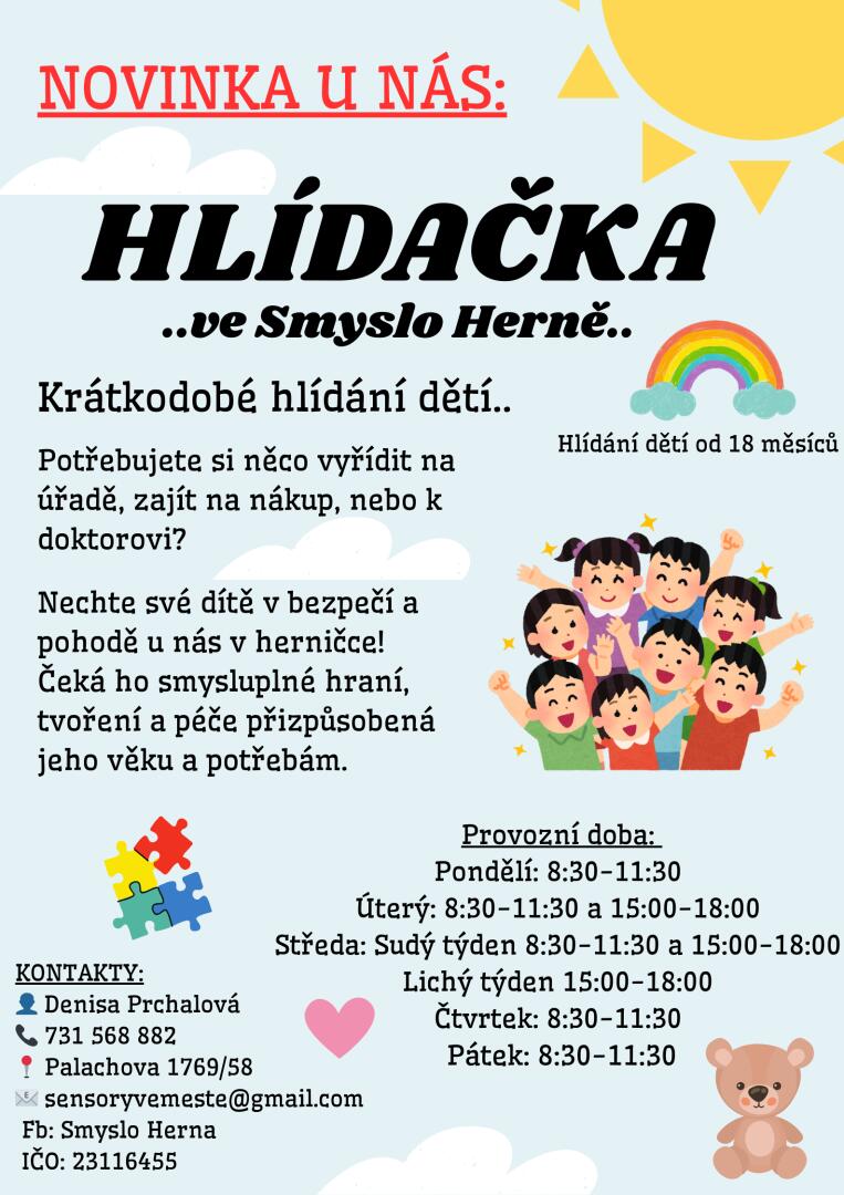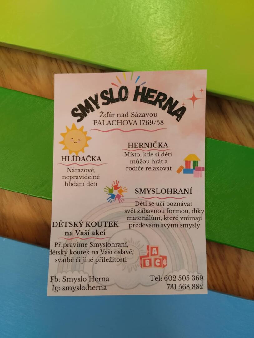 Potřebujete si v klidu zařídit pochůzky, zajít na nákup nebo k lékaři, a zároveň mít jistotu, že je vaše dítě v dobrých rukou? Ve Smyslo Herně se může během vaší nepřítomnosti ponořit do světa tvoření, her a objevování.