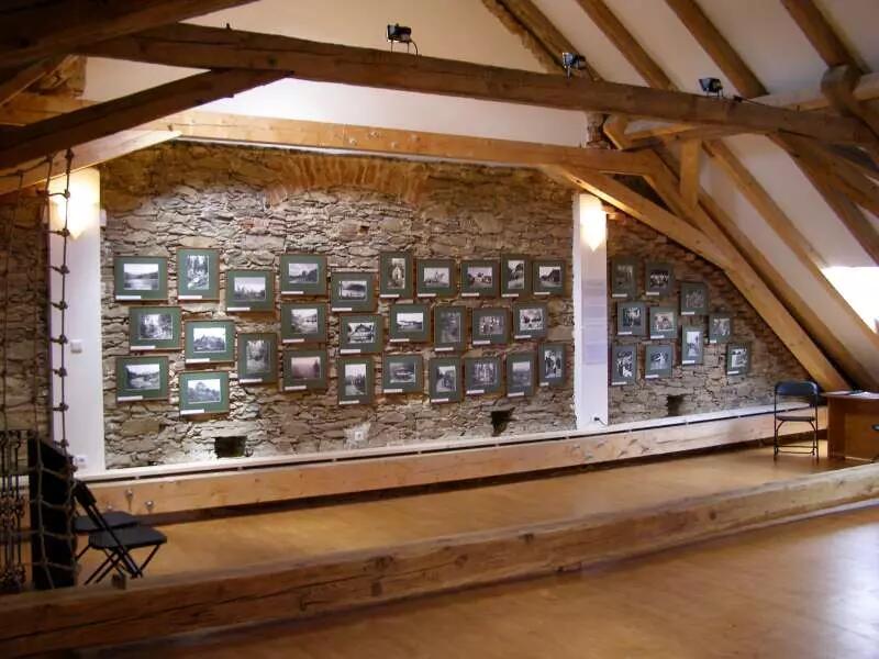 Na galerii, která byla dříve vyhrazena pro ženy, najdete expozici zaměřenou ke spolužití Čechů, Židů a Němců na Šumavě a zajímavé audionahrávky doplňující jednotlivé události a osudy lidí spjatých s Hartmanicemi. V podkroví si můžete prohlédnout Šumavu na starých fotografiích a také originální fragmenty z původní budovy.