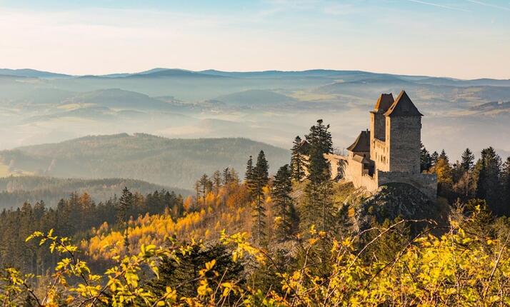 Nejvýše položený královský hrad založený roku 1356 skýtá strhující výhledy nejen do oblasti centrální Šumavy. Dostupnost příjemnou procházkou po asfaltové cestě z 1,5 km vzdáleného parkoviště. Hrad žije čilým kulturním životem - divadly, hudbou a oživenou historií. Hrad nebyl od konce 15. století výrazněji upravován, a tak se dochovaly původní středověké konstrukce a prvky v autentické podobě.