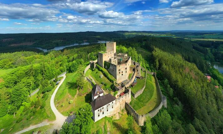 Hrad byl vybudován na počátku 13. století zřejmě moravskými Přemyslovci jako opěrný bod území na trojmezí Čech, Moravy a Rakouska. Svým pojetím dvou věží propojených palácem, představuje ojedinělý komplex svého druhu v Čechách a je jednou z nejvýznamnějších románských památek ve střední Evropě. Horní část vyšší věže je upravena jako vyhlídková. Z ní se otevírá pohled na hluboké lesy České Kanady. Expozice představuje dějiny hradu a místní archeologické nálezy. V mohutných zdech hradu se kdysi zalíbilo německému básníkovi Friedrichu von Schillerovi, který do okolních lesů umístil děj svých Loupežníků.