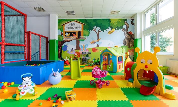 Pro nejmenší děti je v prostoru kavárny k dispozici velký dětský koutek s řadou oblíbených a didaktických hraček – skluzavka, lego, míčky, sedací vaky, auta, houpačky, skládačky, nástěnné hrací prvky, apod.