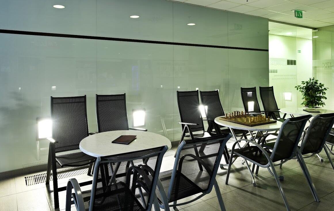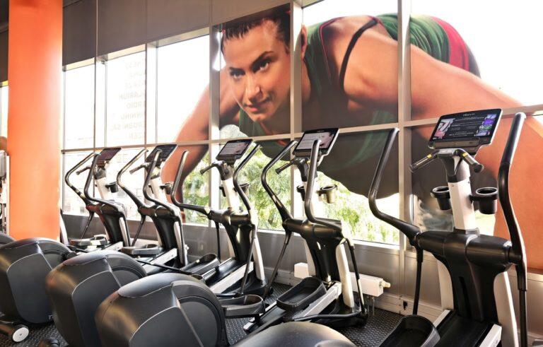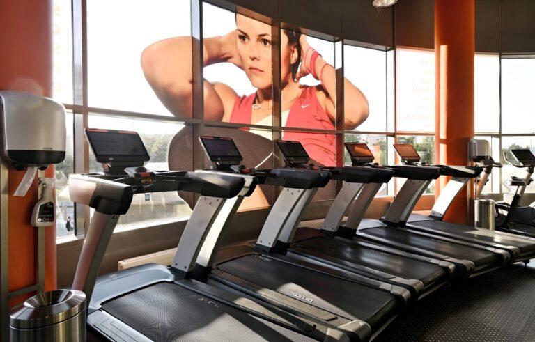Klimatizovaný sál s velkoplošnou obrazovou projekcí. Kola vybavená měřením tepové frekvence, ujeté vzdálenosti i spálených kalorií.