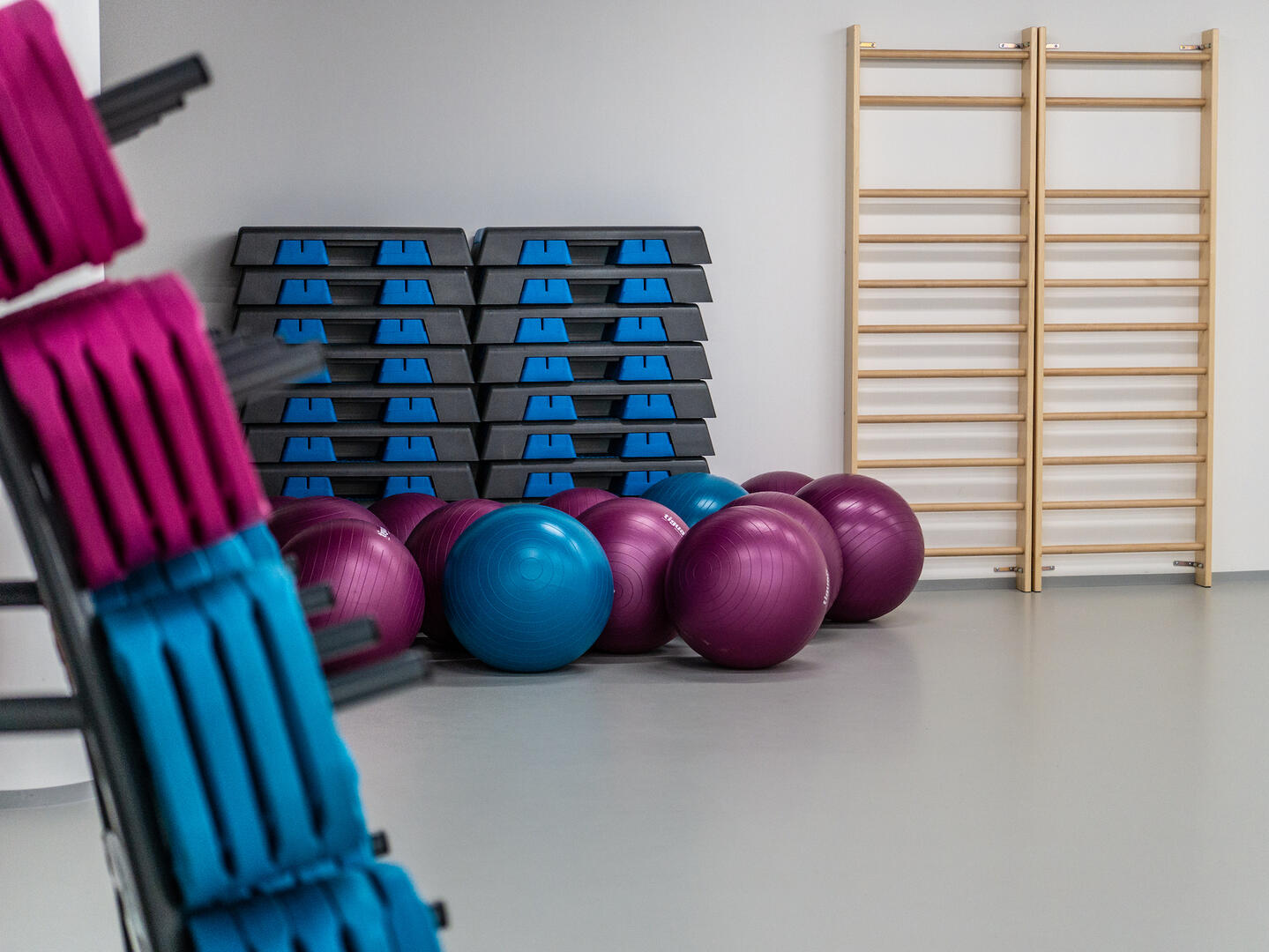 Aerobní sál je velký 154 m2, obklopený zrcadly a podlahou z drcené gumy a polyuretanovým povrchem.