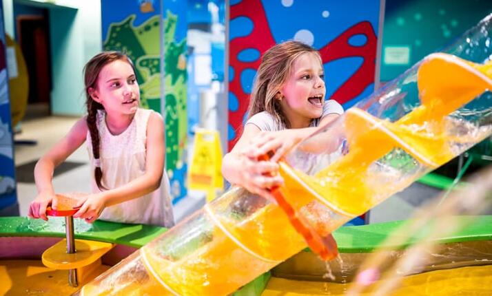 Tady je ten pravý ráj pro všechny vodníky! „Ponoř“ se do vodního světa a v korytě roztoč vodní vír, postav hráz, pomocí vodní pistole rozpohybuj vrtule nebo vyzkoušej, jak lodě překonávají vodní úrovně pomocí zdymadla. Mokré tričko přeci vadí jen maminkám! :)