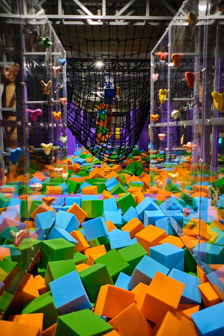 Šplhejte kam až vám síly stačí, pád do molitanového moře je jak stoprocentně bezpečný, tak i zábavný.