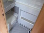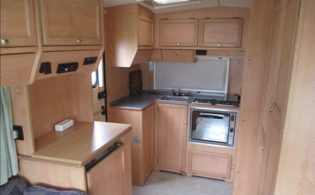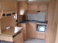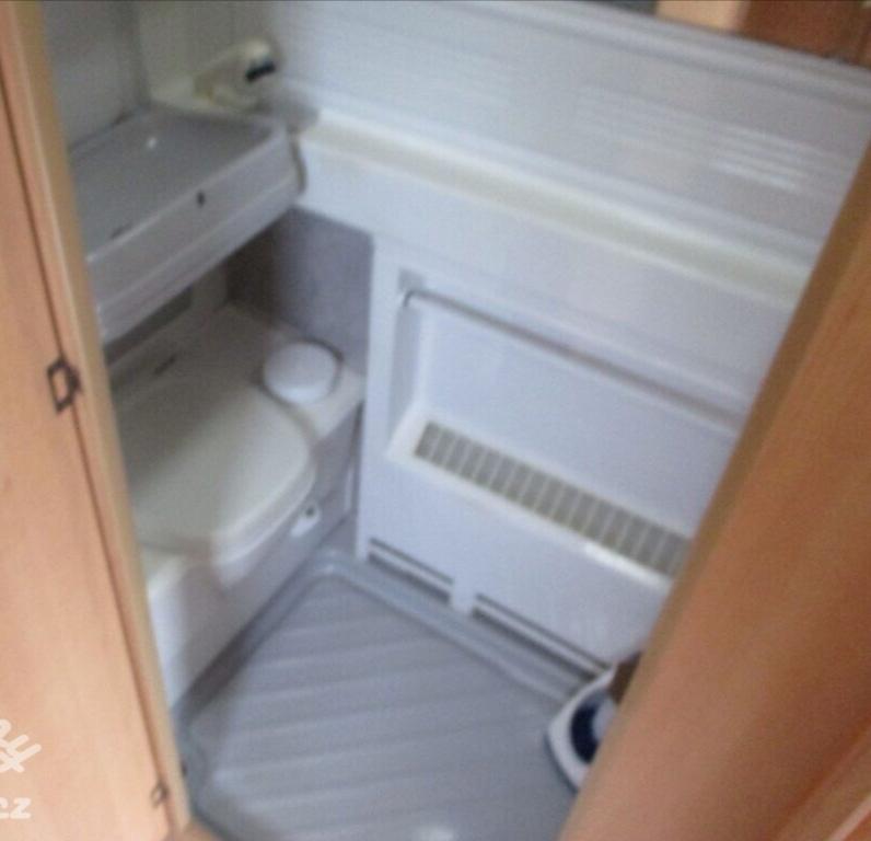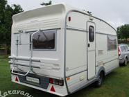 Tento karavan je určen pro 2-3 osoby. Vpředu je kuchyňská linka s lednicí, dřezem, sporákem se 3 hořáky a pečící troubou, dále koupelna s umyvadlem, sprchou a WC. Vzadu je velké sezení, které je možné použít na spaní jako 2 samostatné postele nebo rozložit na spaní pro 3 osoby. V karavanu je plynové topení, bojler, sítě proti hmyzu a thermorolety, rozvod 220V, 12V a PB, pojezd na dálkové ovládání, nosič na 2 kola, předstan po celé délce.