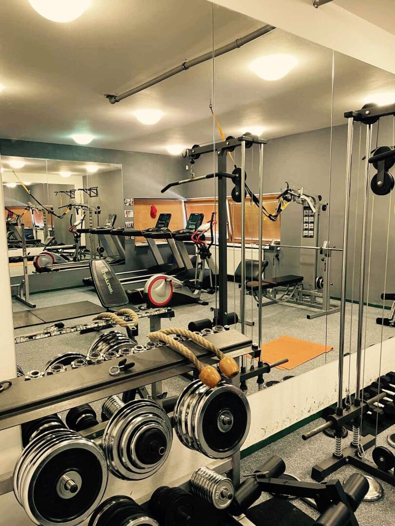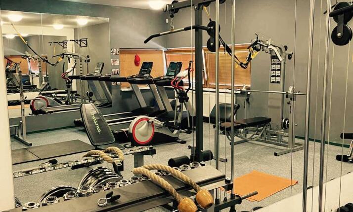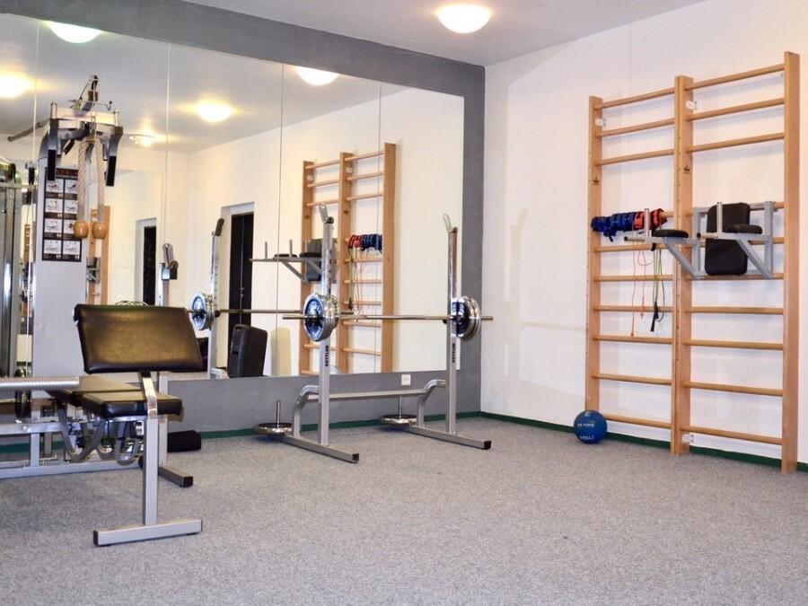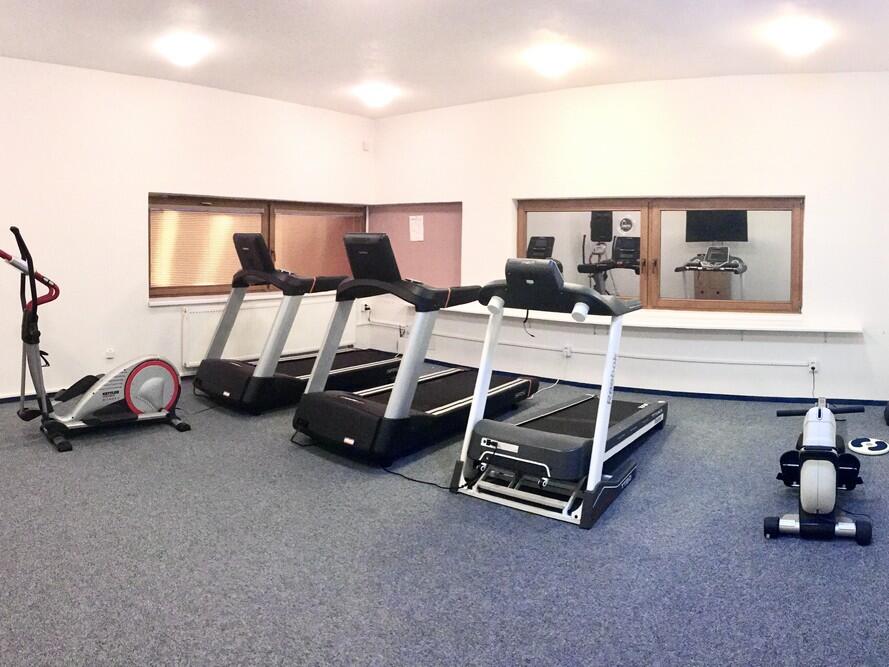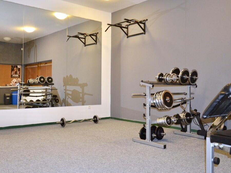Posilovna je vybavená stroji a náčiním k posílení a zpevnění celého těla.