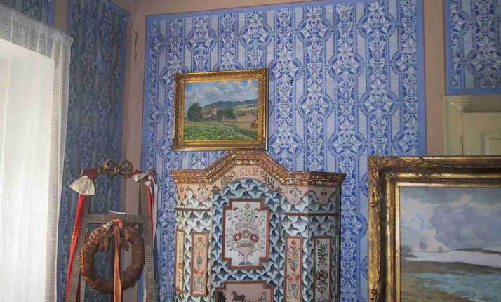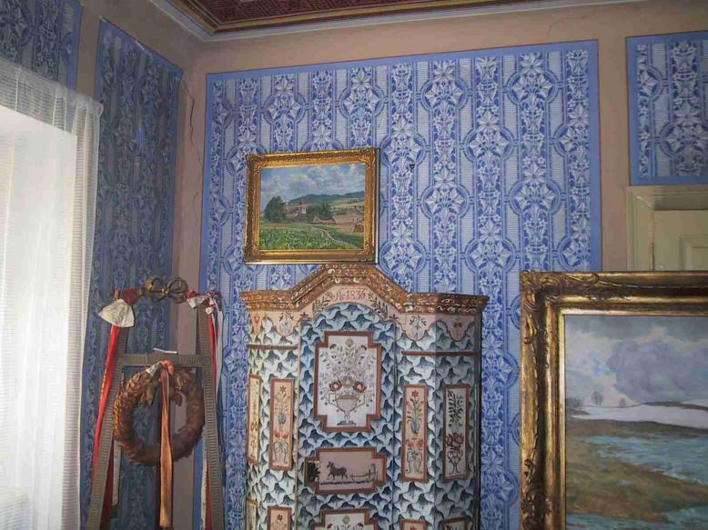 Vchod ze dvora je pravoúhlý, s římsou v kamenném ostění. Ve střední části přízemí je síň s valenou klenbou, z ní po pravé straně jsou přístupné dvě místnosti s podobnou klenbou, vlevo je místnost s plochým stropem. Na pravé straně síně je umístěno schodiště do poschodí a schodiště do sklepa, který je zaklenutý rovněž valenou klenbou. V poschodí zabírá dvě třetiny klenebního pole síň, z níž je přístup do pěti místností. V části těchto prostor v tzv. Markově modrém pokoji se nachází pamětní místnost P. Ant. Marka a malá galerie obrazů a písemností F. Kavána.