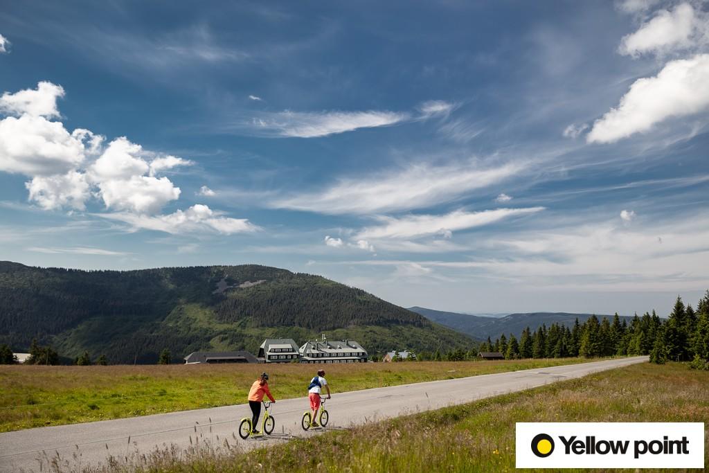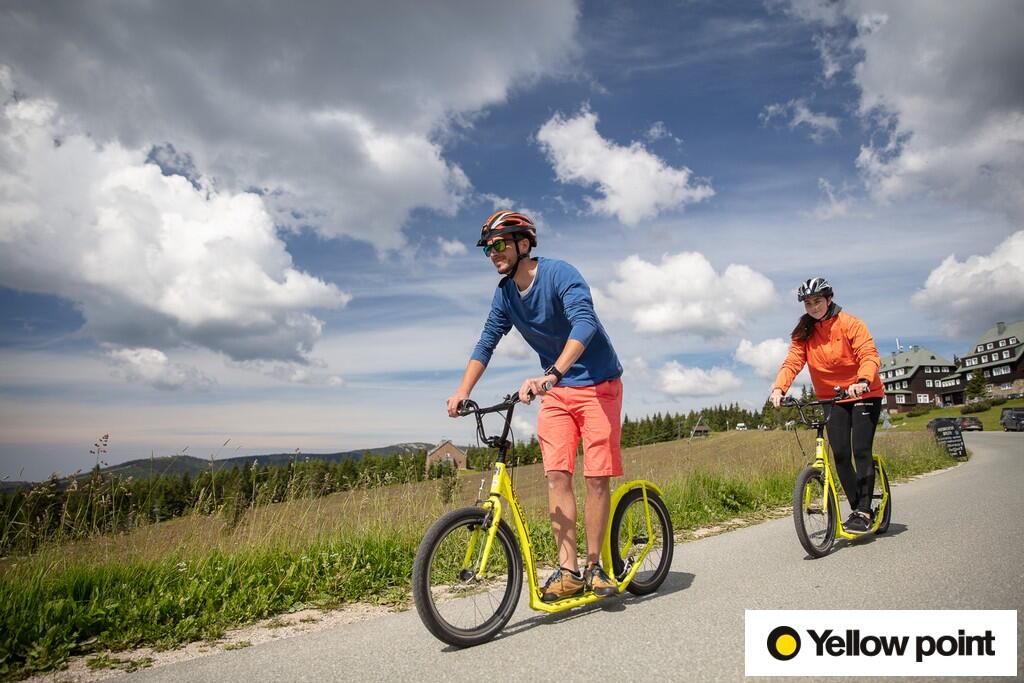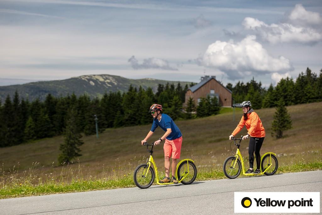 Yellow Point zajišťuje s kompletním servisem sjezd na silničních koloběžkách od Špindlerovy boudy do centra Špindlerova Mlýna.