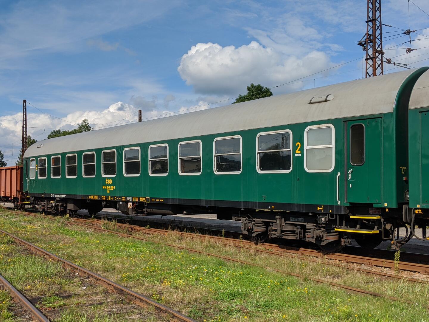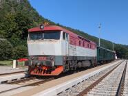 Historický rychlík ve složení lokomotiva 749 “Bardotka” a historické vozy.