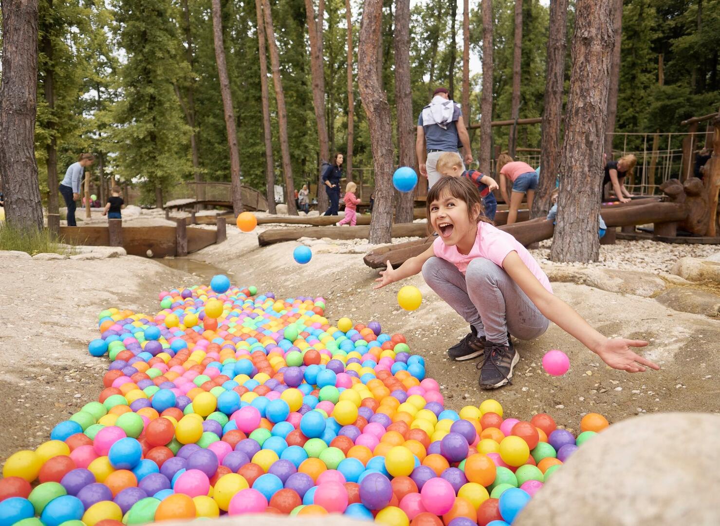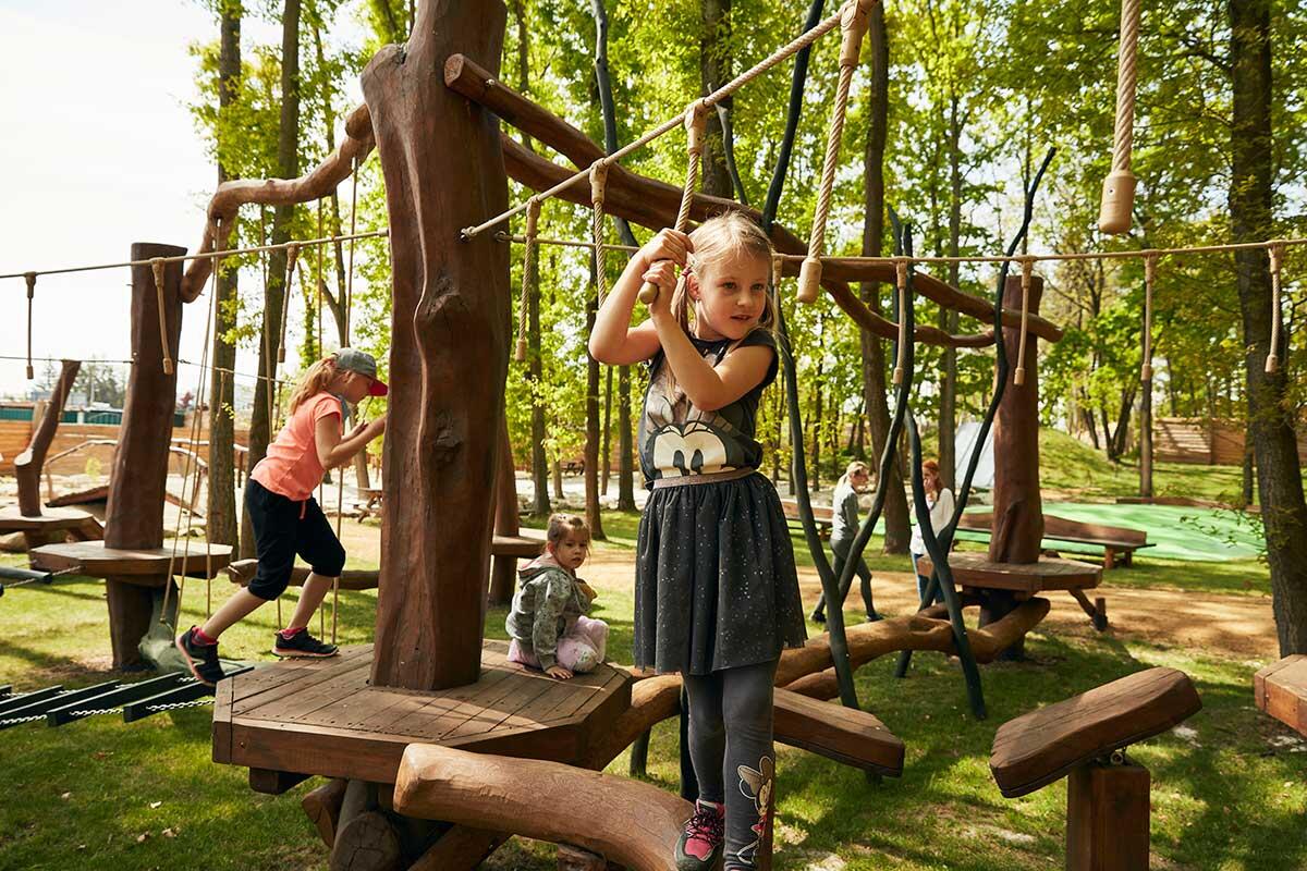 Děti budou dovádět v lanovém centru, na desítkách přírodních prolézaček, skluzavek a houpačkách. Zaskáčí si na populárních vzduchových polštářích a trampolínách. Můžete se projet parkem autovláčkem, zatočit se na řetízkových kolotočích, zaskotačit si na skákacím hradu a užijete si spoustu dalších atrakcích.
