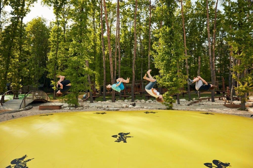 Děti budou dovádět v lanovém centru, na desítkách přírodních prolézaček, skluzavek a houpačkách. Zaskáčí si na populárních vzduchových polštářích a trampolínách. V parných letních dnech vás osvěží vodní hřiště a sprchy.