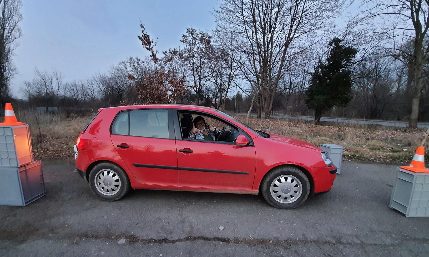 Kvůli atmosféře ve voze nebude doprovod sedět uvnitř vozu během praktické části.