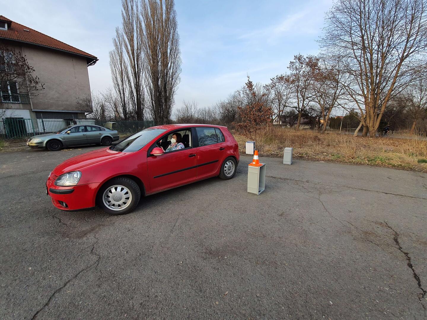 Kvůli atmosféře ve voze nebude doprovod sedět uvnitř vozu během praktické části.