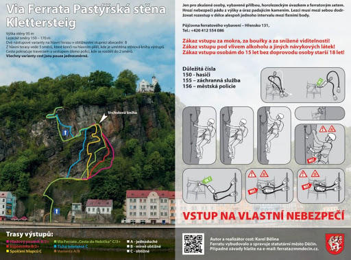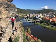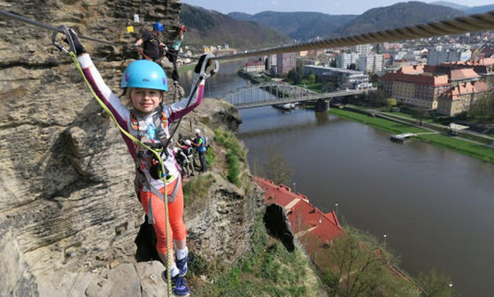Děčínská ferrata je vyjímečná množstvím linií, které lze vylézt. Celkové převýšení stěny je cca 100m a délka zajištěných cest je 150-170m. Na výběr budete mít z víe než 15 různých směrů s obtížností A (lehké) - D+ (obtížné).