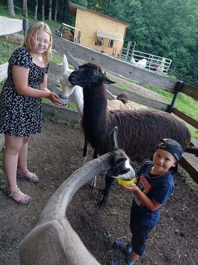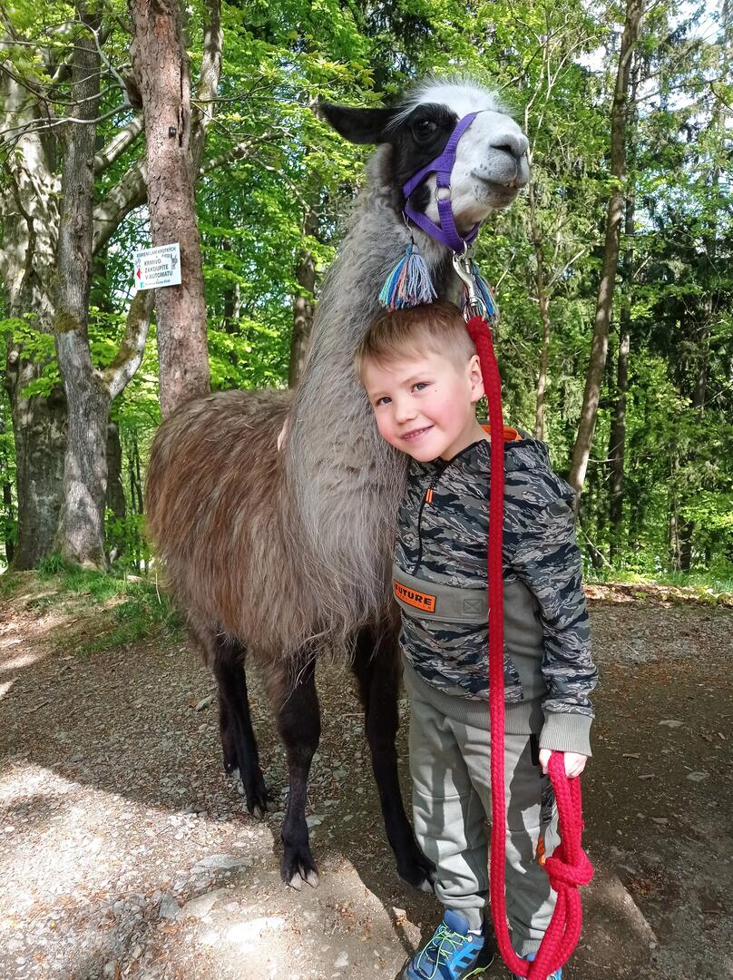 Po návratu na farmu můžete lamy a kozičky nakrmit a podívat se i na další obyvatele výběhu – včetně roztomilých lamačat.