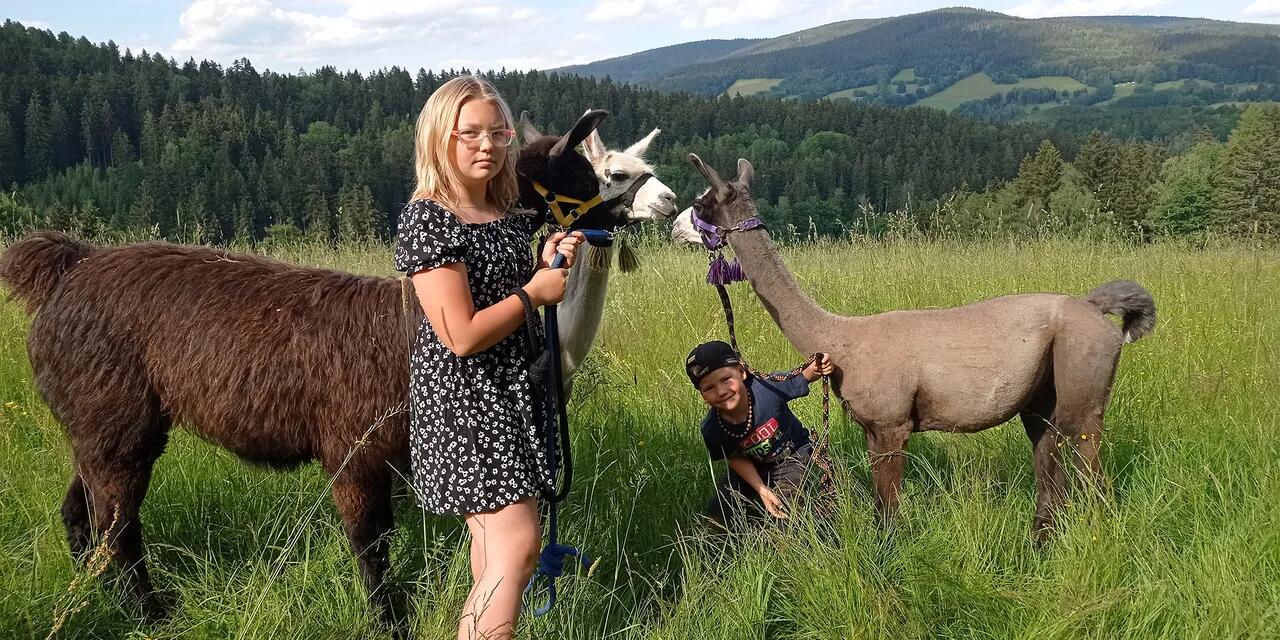 Na tomto místě vám nabízíme unikátní zážitek – procházku s lamou nebo velbloudem, což je možnost, kterou máte jen málokde v České republice. Přijďte si užít procházku s těmito krásnými zvířaty, která svou elegancí odstraňují obavy z velkých zvířat. Tato zvířata jsou připravena vás provést malebnou krajinou Krkonoš.