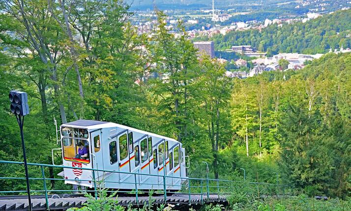 Nástupiště jsou oboustranná, vozy mají dveře z obou stran. Lanovka je hojně využívána především turistickými návštěvníky města. Ze spodní stanice vás vyveze na vrchol, kde můžete navštívit rozhlednu Diana a lesní restauraci-kavárnu Diana.