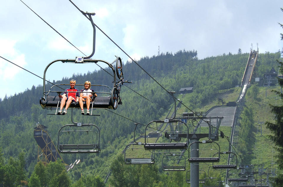 Lanová dráha se 130 čtyřmístnými sedačkami měří 1303 metrů, dolní stanice je 665, horní pak 1022 metrů nad mořem. Přepravní kapacita dosahuje 1782 osob za hodinu, jízda trvá asi 9 minut. Harrachovská lanovka slouží turistům celoročně, v zimě zejména pro lyžaře a běžkaře, v letním období poslouží cyklo i pěším turistům. Vrcholek Čertovy hory je perfekním místem pro začátek výletu, ale i pro krásný výhed do okolní krajiny.
